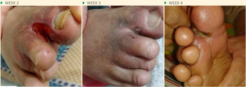 - Study was conducted at the Sheba Medical center. Representative pictures of wound treatment with Dermaden™ .
